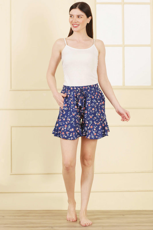 Womens Shorts Navy Blue Multi Flower