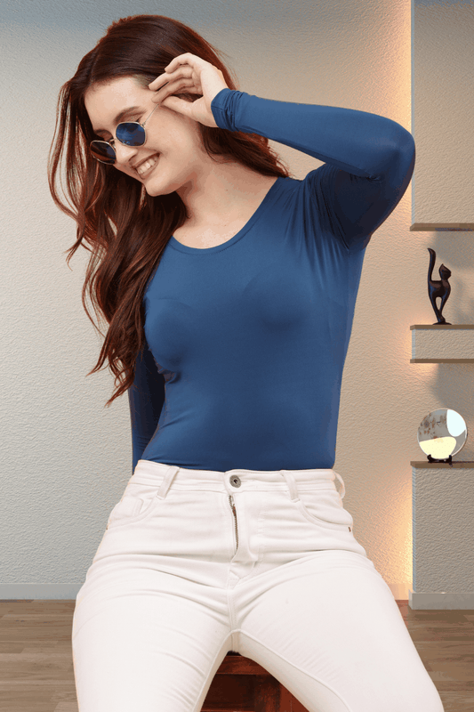 Girls Long Sleeve T shirts Polylycra Round Neck - Ocean Blue
