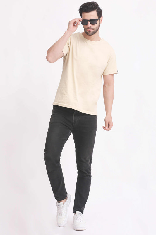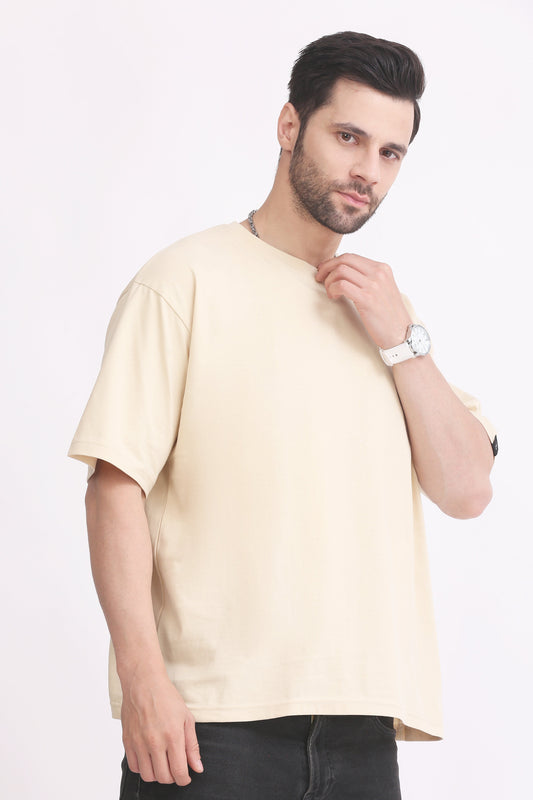 Mens T Shirt Oversized Round Neck - Beige