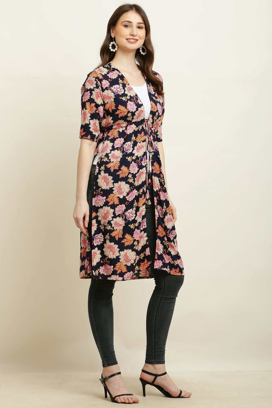 Rayon Printed Stylish Long Shrug Multiflower