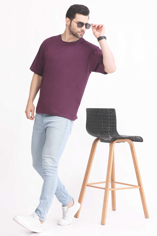 Mens T Shirt Oversized Round Neck - Purple