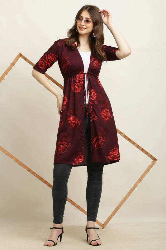 Rayon Printed Stylish Long Shrug Marron Flower