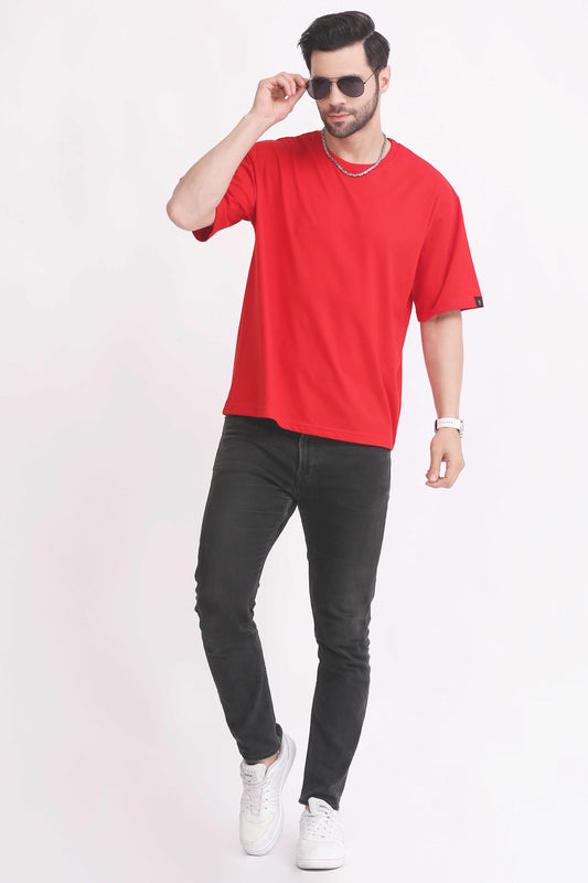 Mens T-Shirt Oversized Round Neck - Red