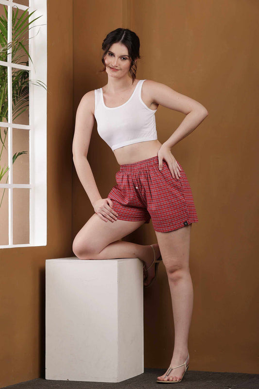 YOUNGBLOK Women's Cotton Boxer Shorts Red Gngm Chks