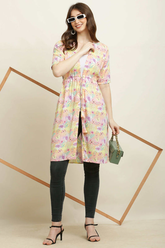 Rayon Printed Stylish Long Shrug Yellow Flower