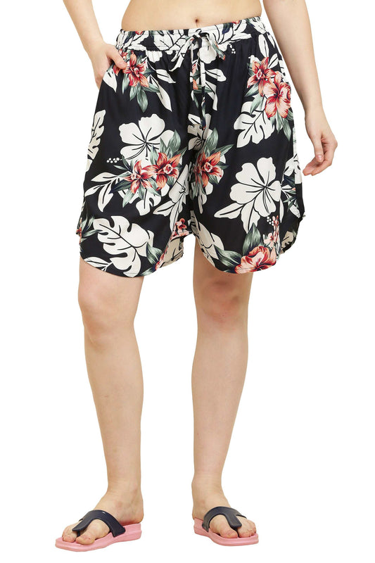 Women's Rayon Print Culotte Shorts Black Flower