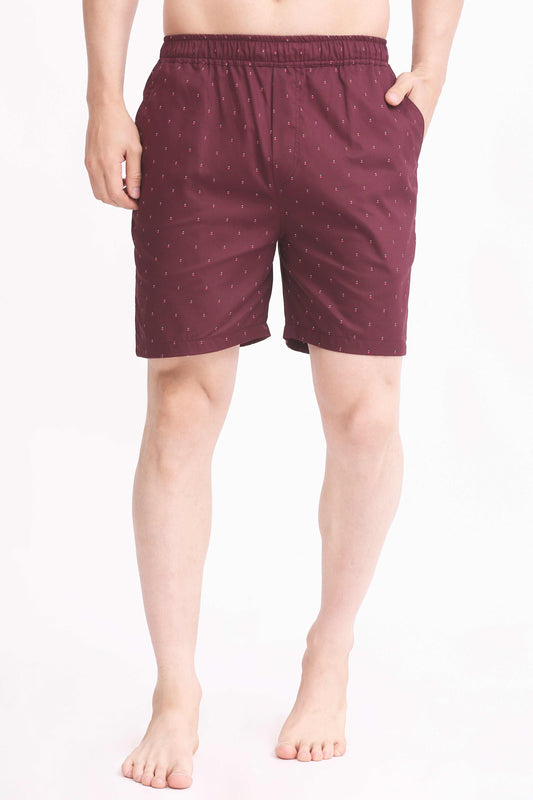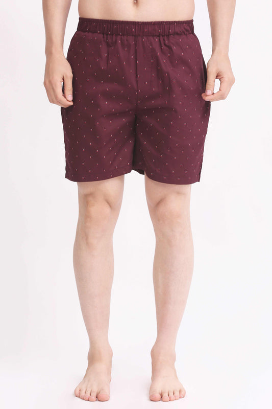 Mens Cotton Shorts with Back Pocket - Maroon Triangle