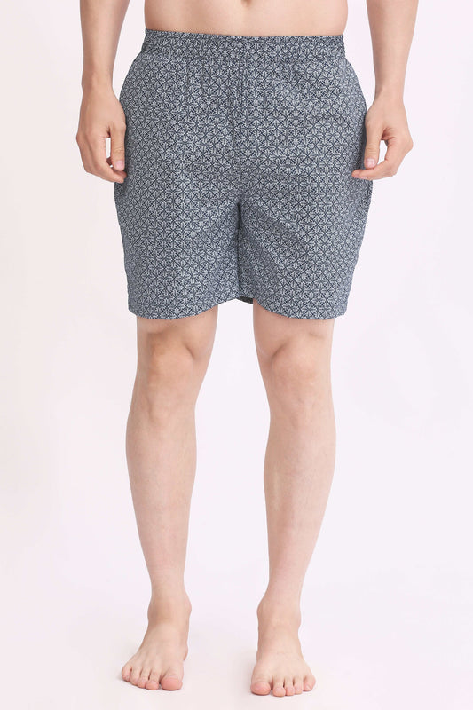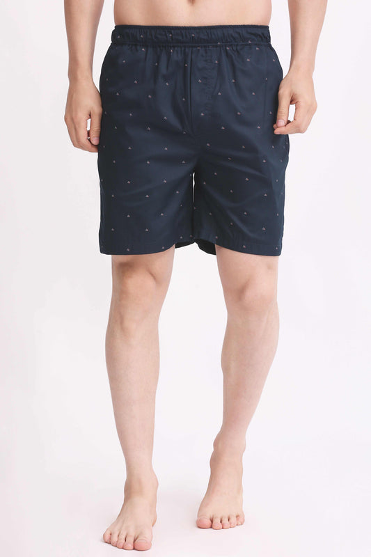 Men's Cotton Shorts with Back Pocket - Navy Blue floral