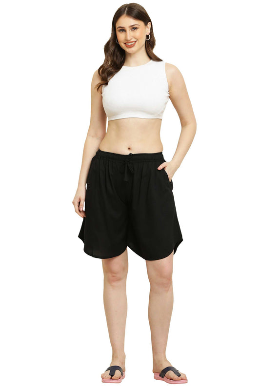 Womens Rayon Print Culotte Shorts Black