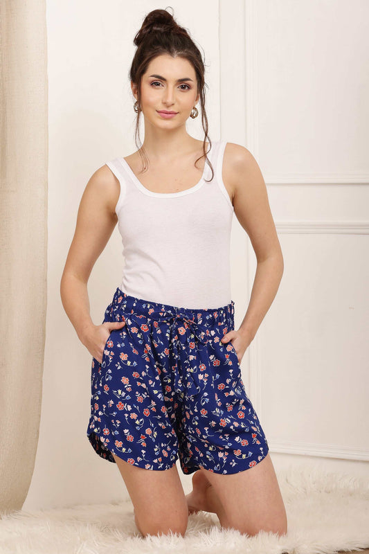 Womens Regular Shorts Navy Blue Multi Floral