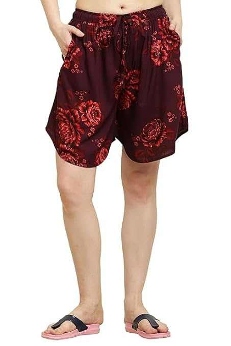 Womens Rayon Print Culotte Shorts Maroon Flower