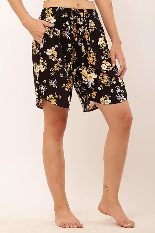 Women's Rayon Print Culotte Shorts Black Flower