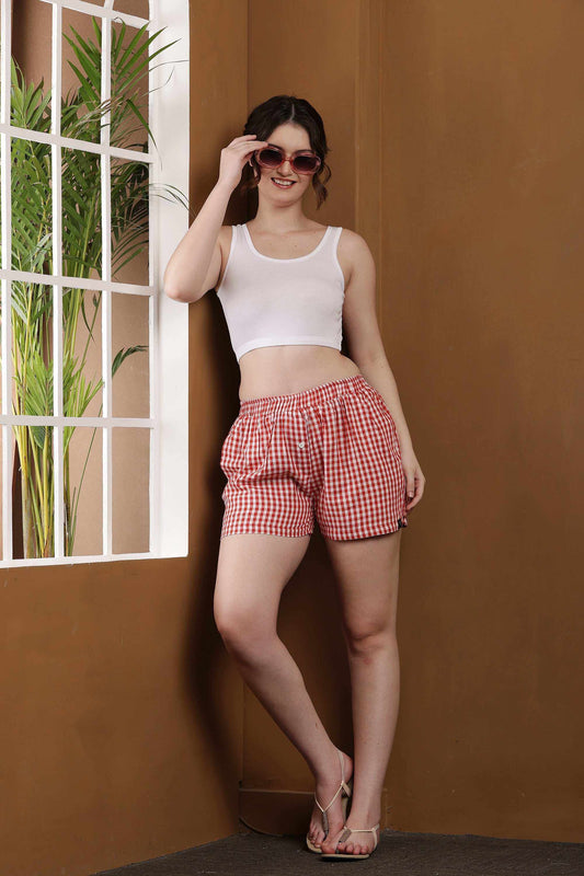 YOUNGBLOK Women's Cotton Boxer Shorts Red Gngm Chks